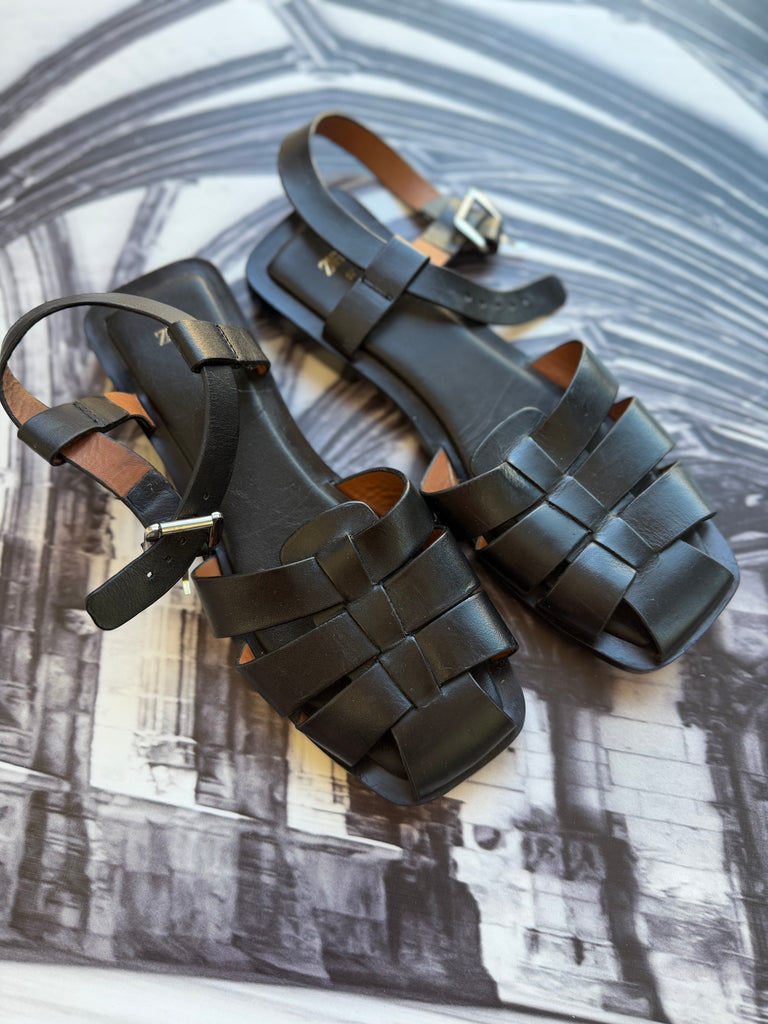 Zara Brand New Black Fisherman Style Flat Shoes - Size 4