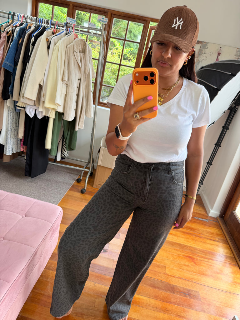 Cotton On Brand New Dark Leopard Print Super Baggy Jeans - Size 30