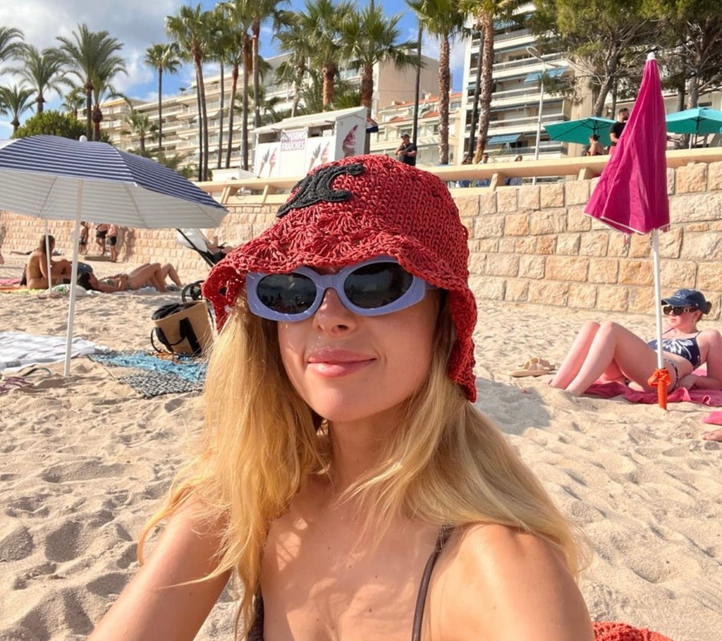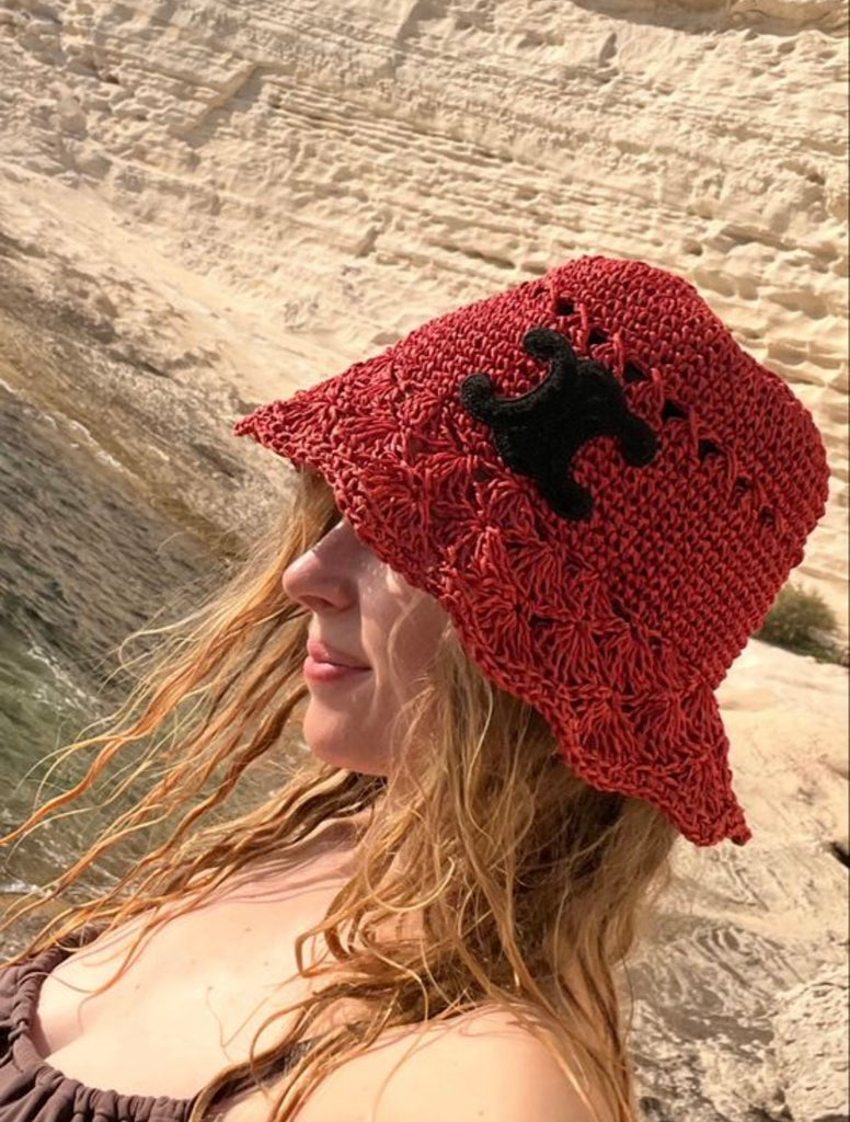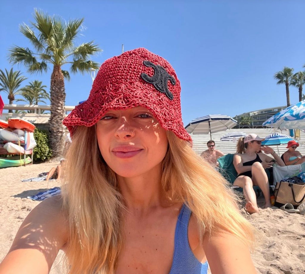 CELINE Triomphe Bucket Hat in Burgundy Raffia (Retail R15000)