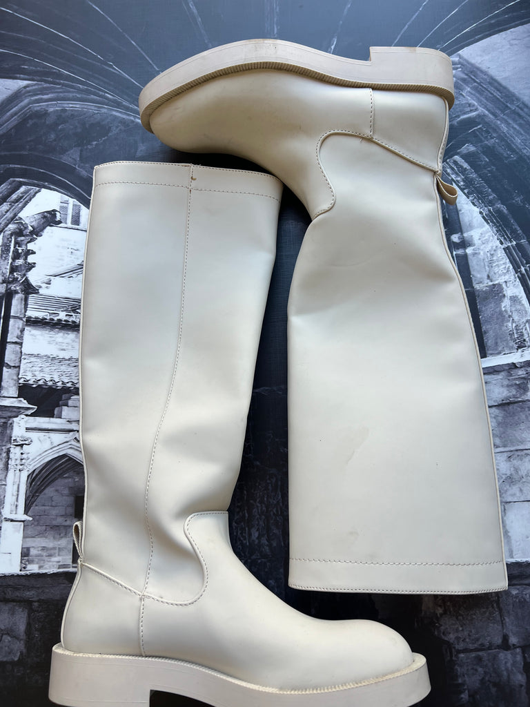 Zara Brand New “Military Style” Cream Boots - Size 4